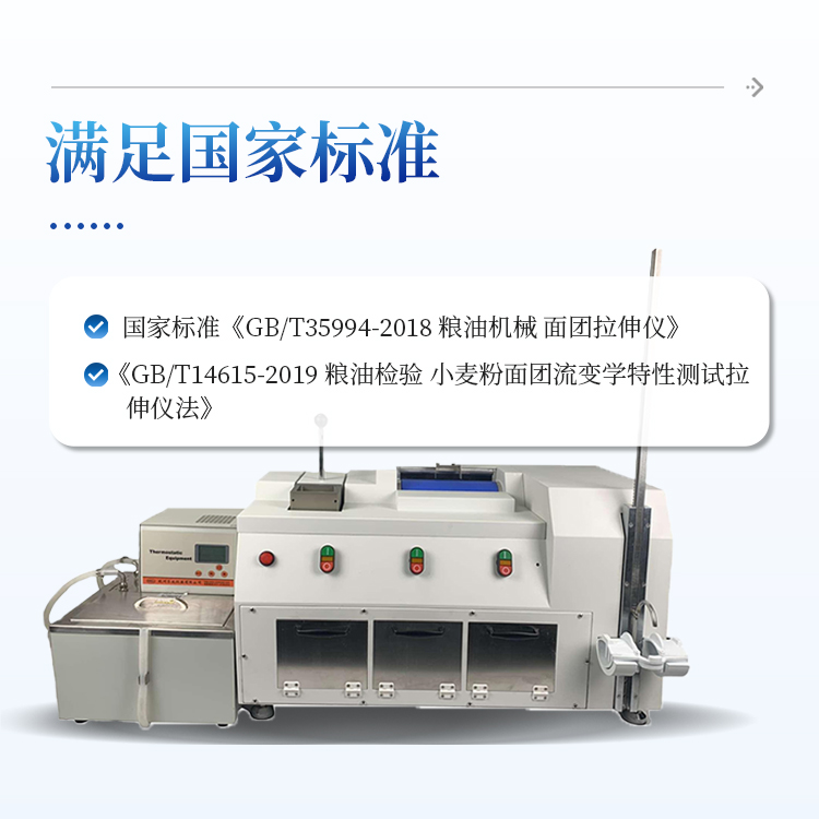 10、仪器指标与性能满足国家标准《GB/T35994-2018 粮油机械 面团拉伸仪》、《GB/T14615-2019 粮油检验 小麦粉面团流变学特性测试拉伸仪法》的标准要求并参与标准的制定;